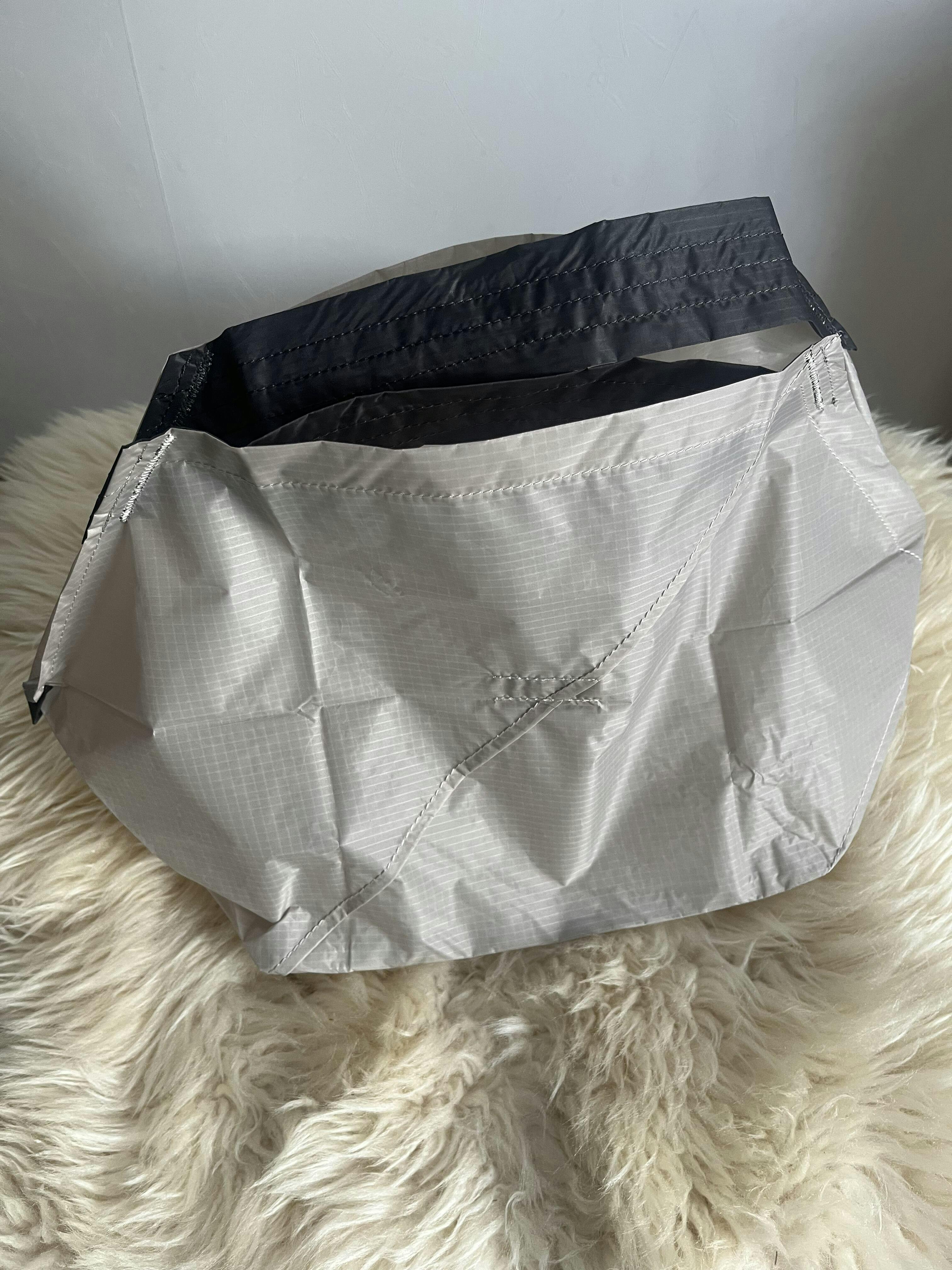 生地が薄いのが心配になりますが、使う時はパッと開いて台に置きやすく、荷物を詰めやすいです。ビニール袋や他のエコバッグは、中身を出したあと畳むのが億劫でそのまま放置…ということがほとんどですが、ORIGAMI BAGは引っ張って折るだけ、とても簡単に畳めるので、その場ですぐ畳む癖がつきました。Mサイズも購入したいです。
