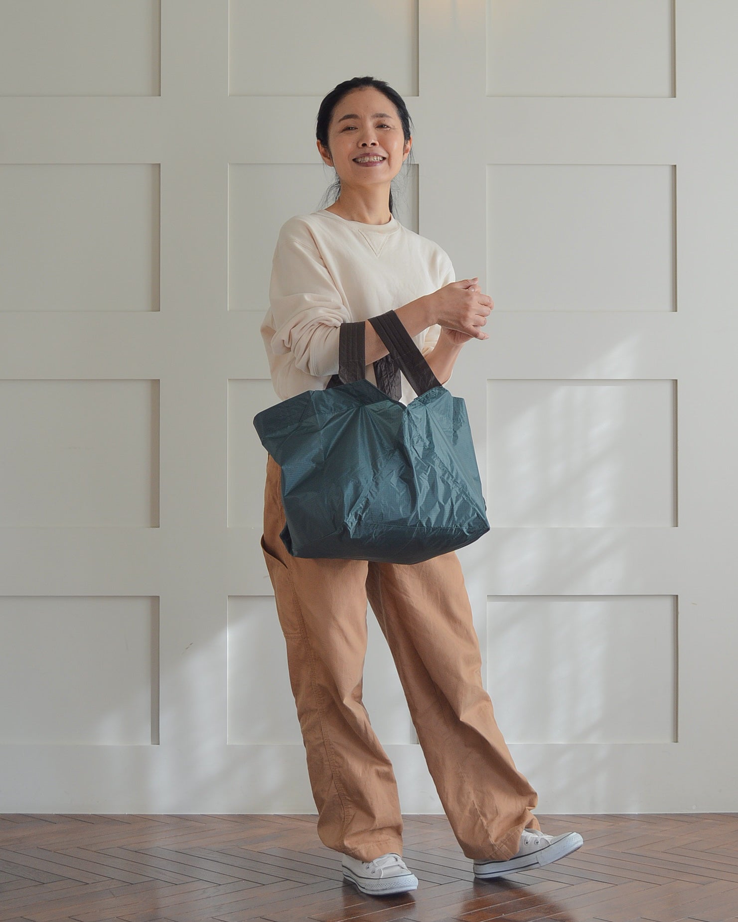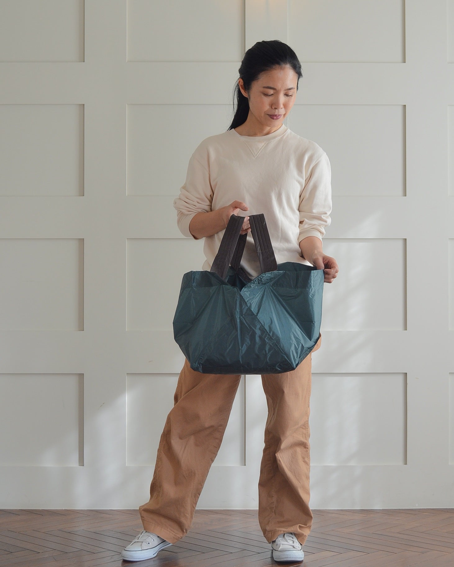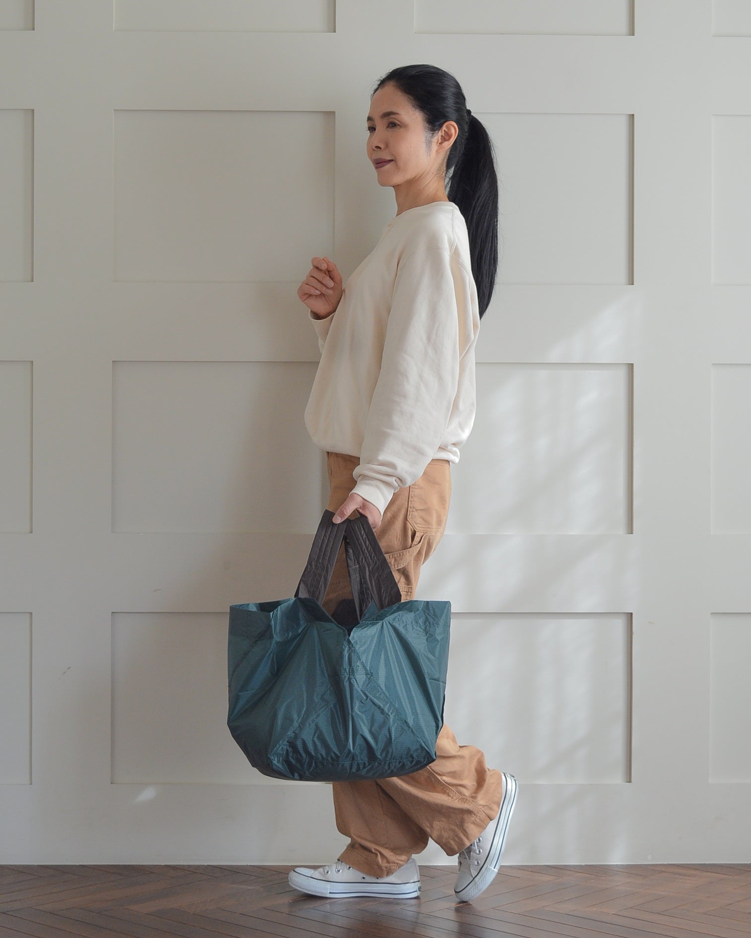 When folded, it's compact at just 4.5cm! It fits easily into your bag, so it's super convenient to carry. The stylish design matches any occasion. Enjoy a smart shopping experience with ORIBA's eco bag that you can use easily anytime!