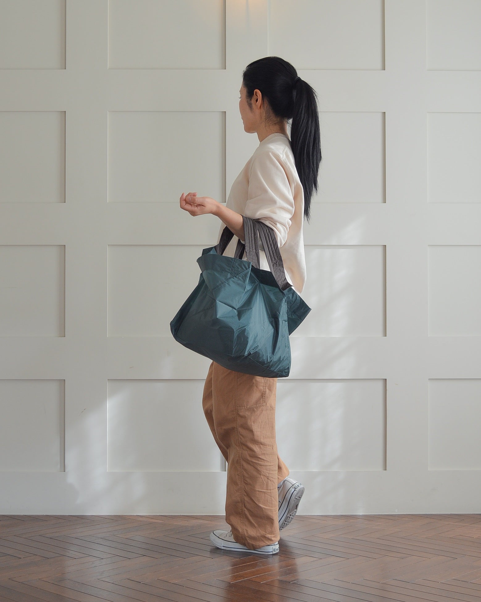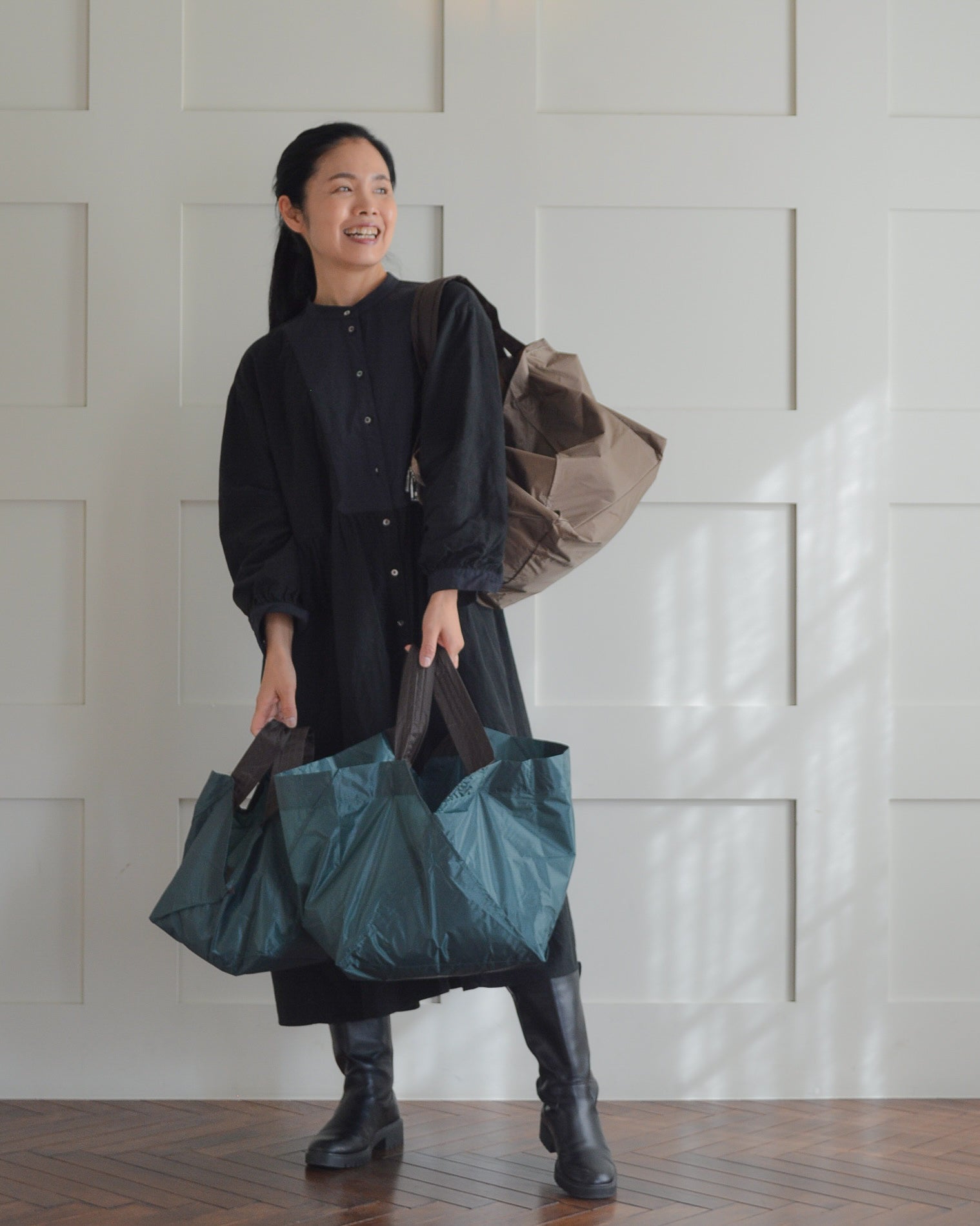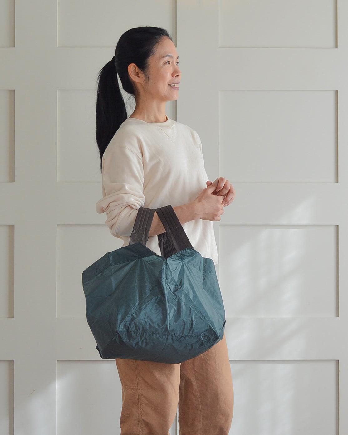 When folded, it's compact at just 4.5cm! It fits easily into your bag, so it's super convenient to carry. The stylish design matches any occasion. Enjoy a smart shopping experience with ORIBA's eco bag that you can use easily anytime!