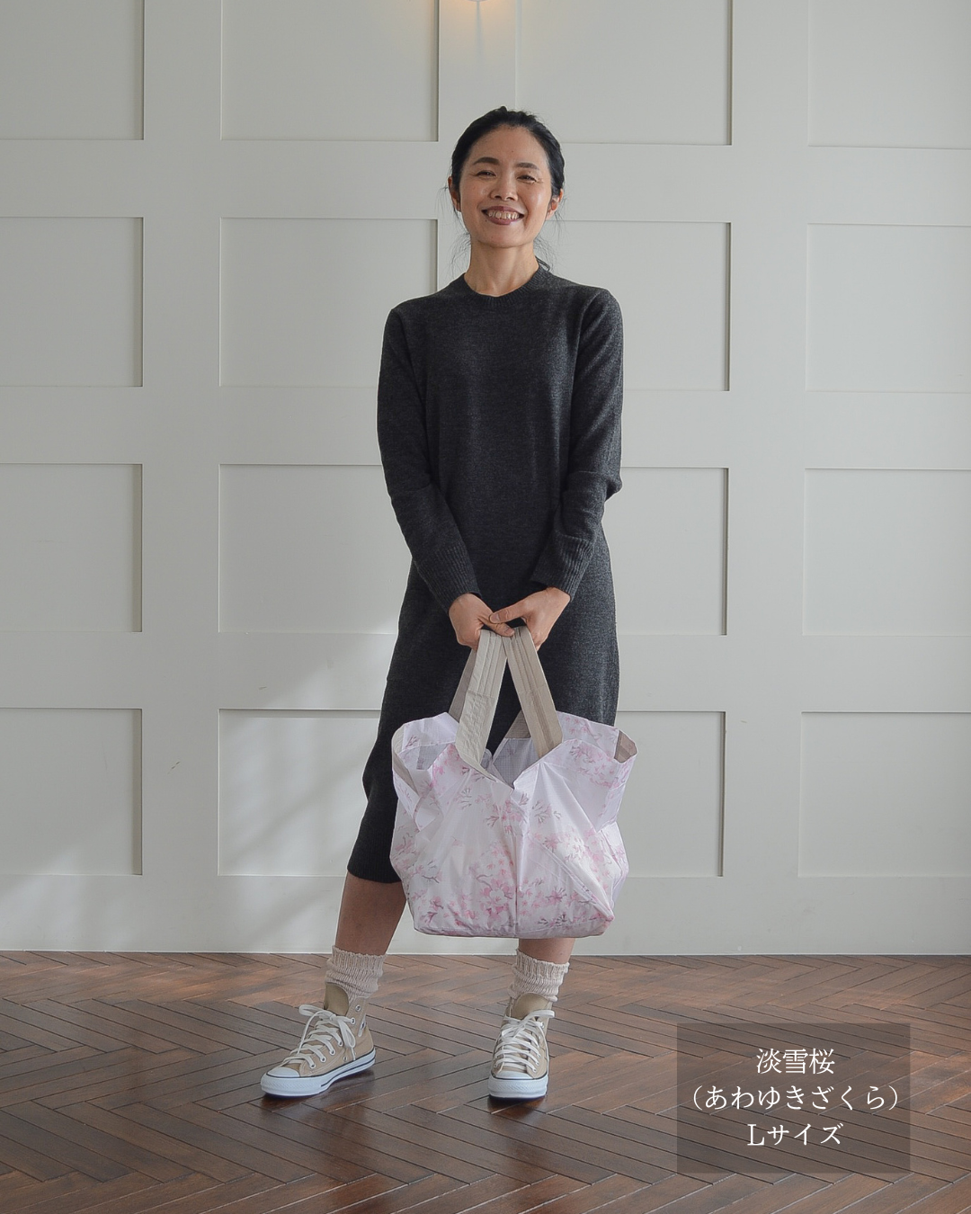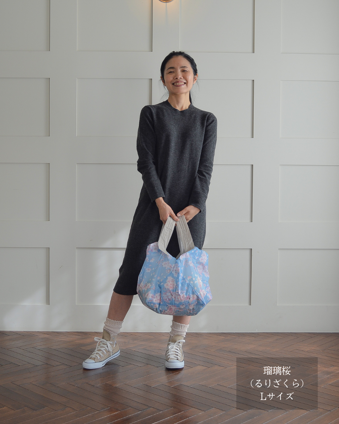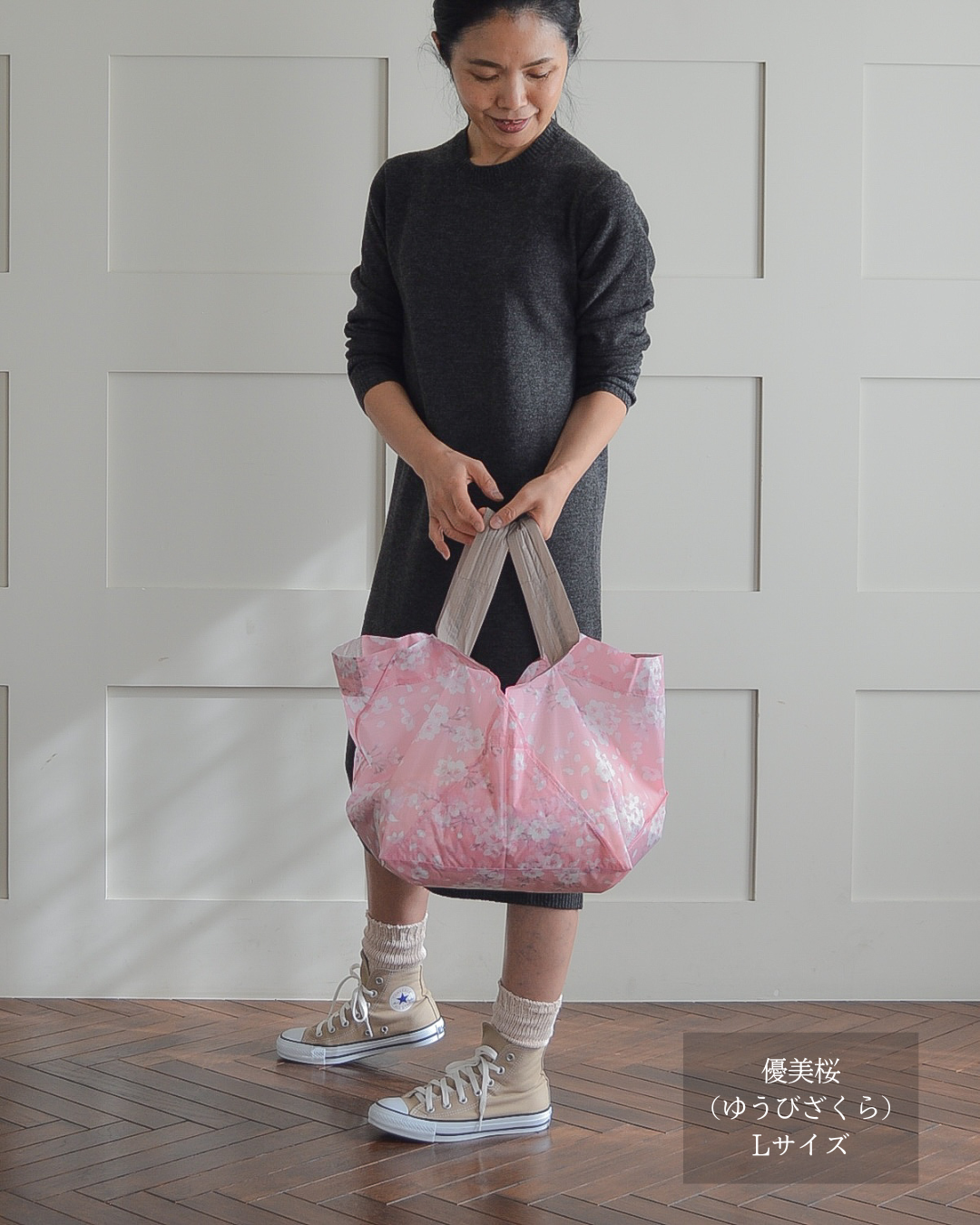 sサイズだとコンビニや簡単な買い物容量なので、カバンに忍ばせとくのによいです。容量的にもうワンサイズ上でもよいかなとも思うので、買い足すのも検討したいです。