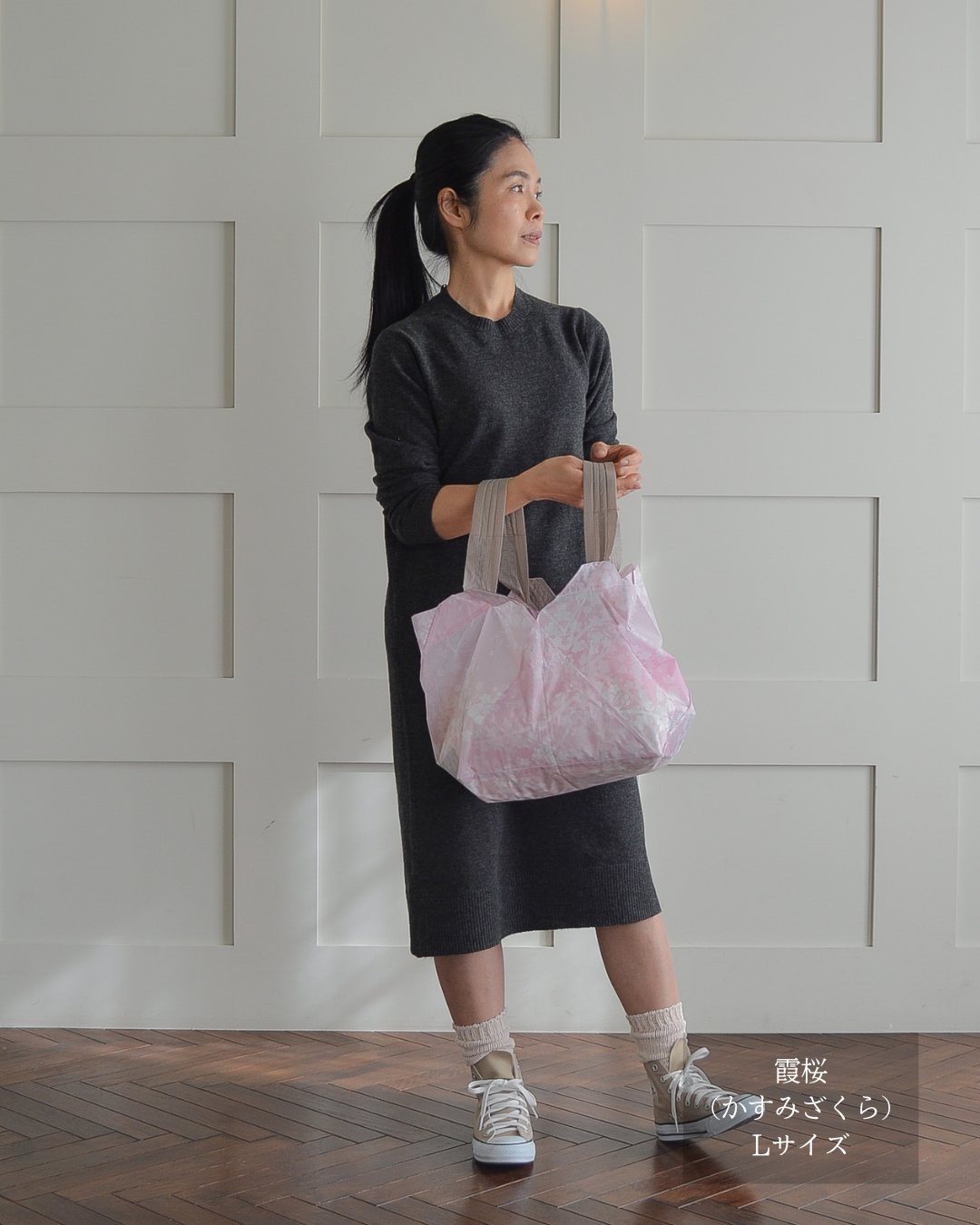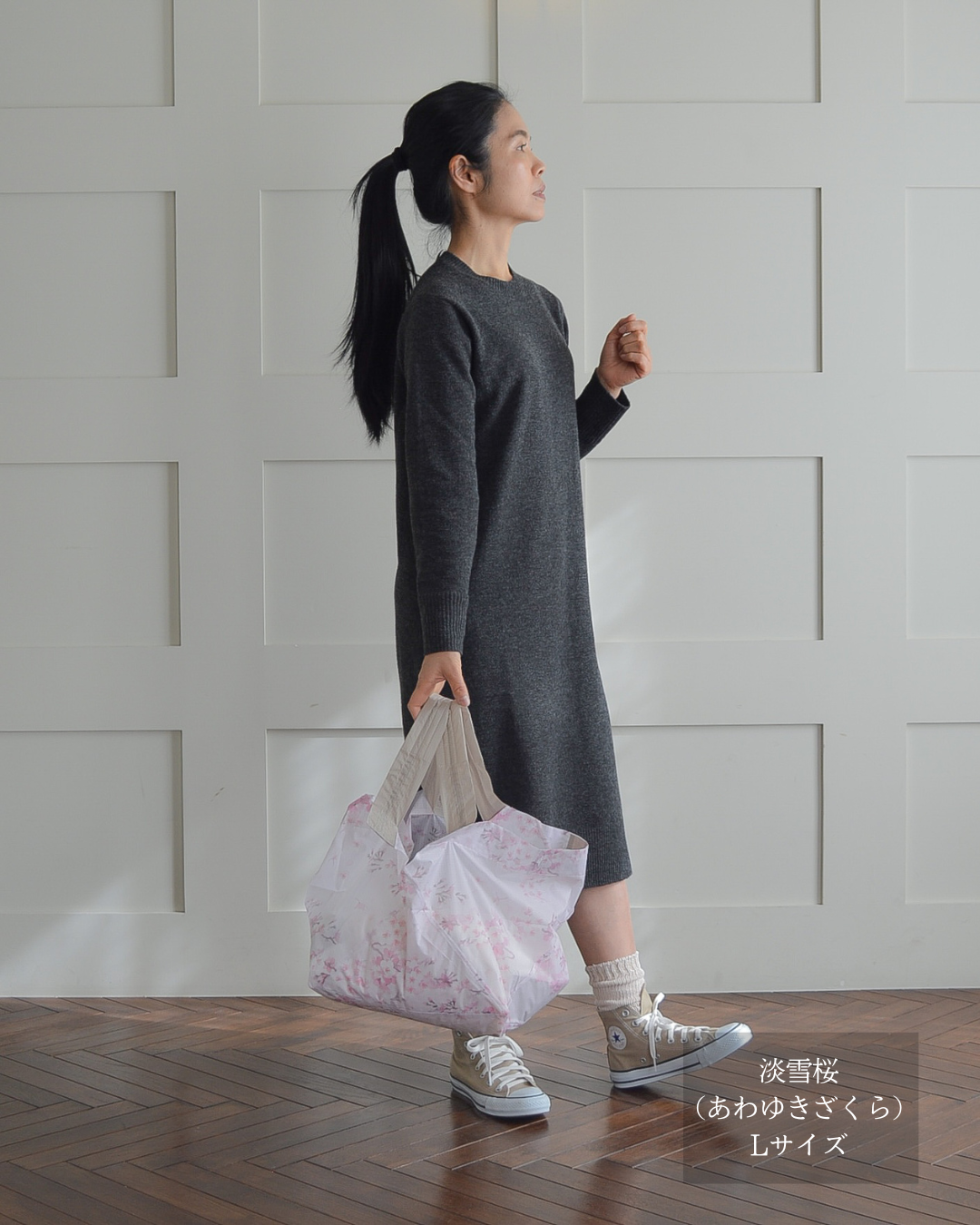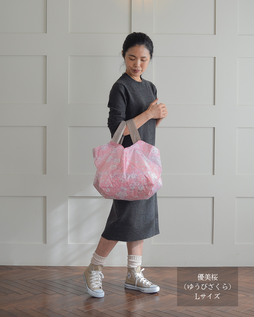 sサイズだとコンビニや簡単な買い物容量なので、カバンに忍ばせとくのによいです。容量的にもうワンサイズ上でもよいかなとも思うので、買い足すのも検討したいです。