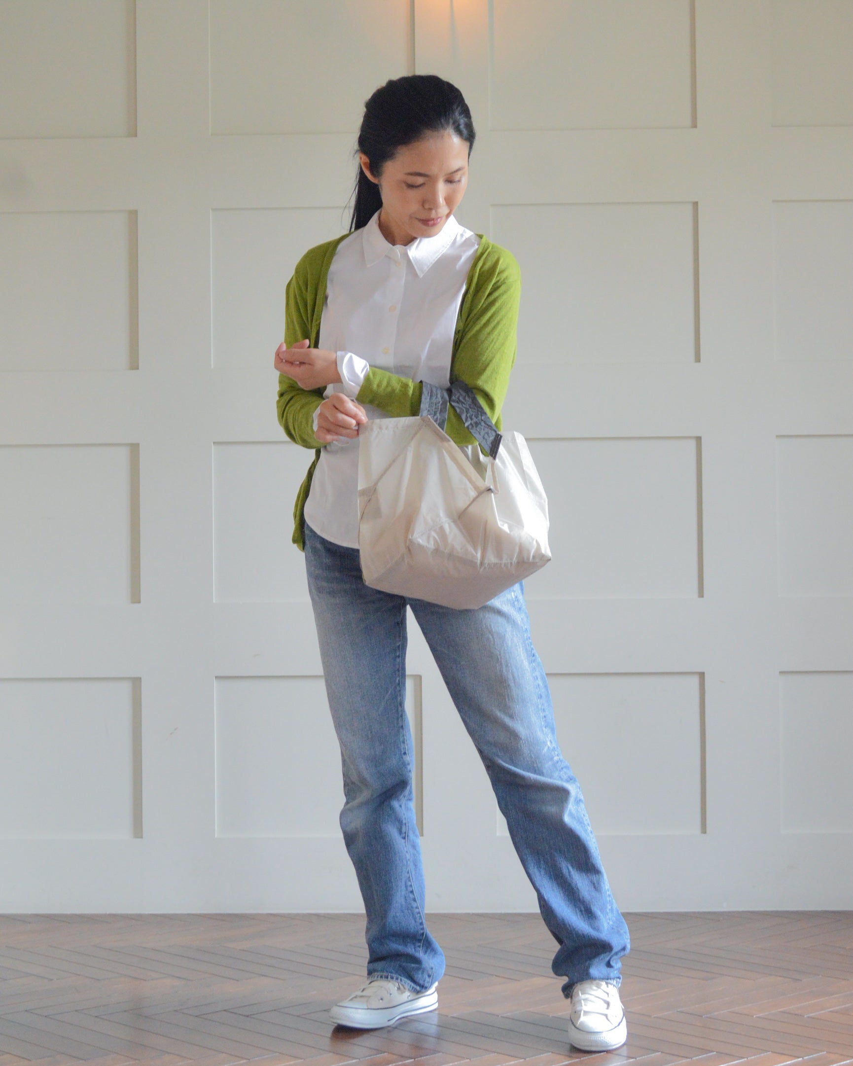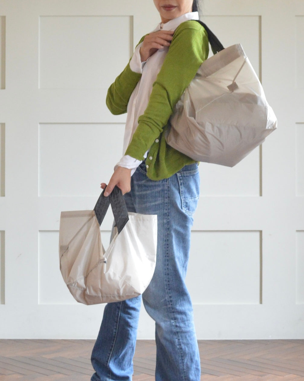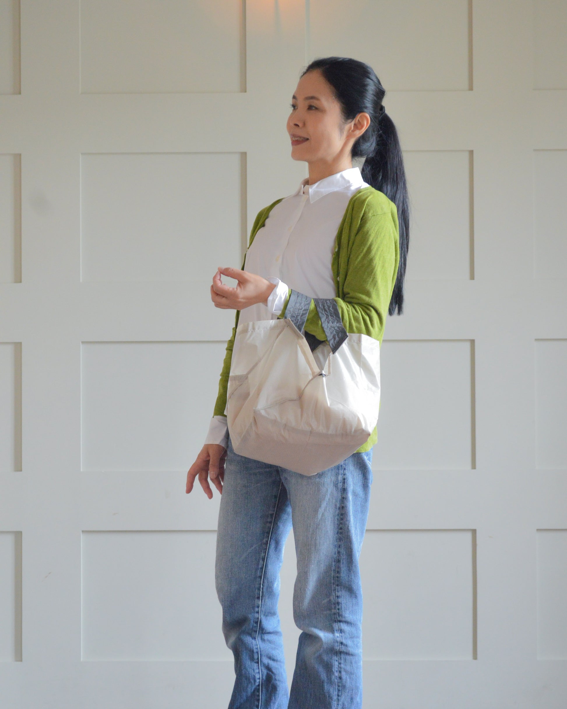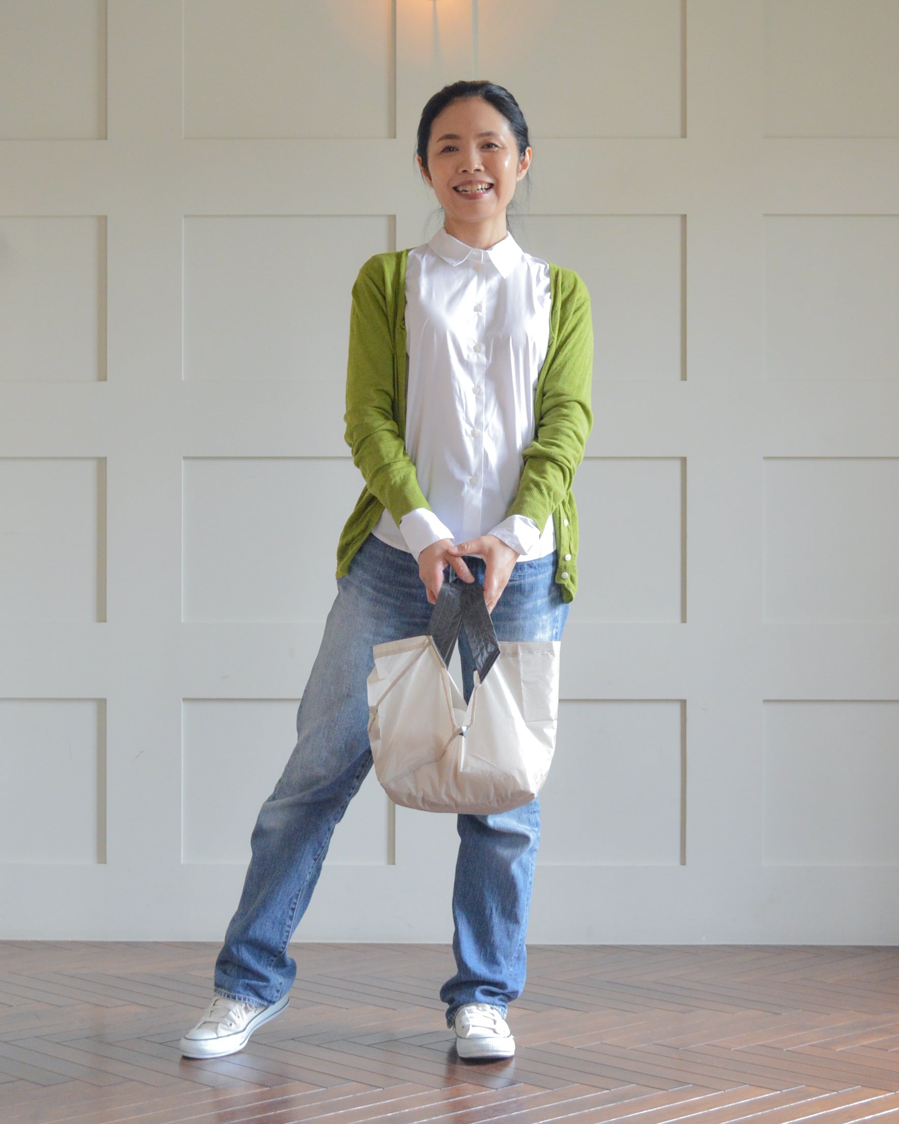 折りたたむと、わずか4.5cmのコンパクトサイズに!バッグにスッと入るから、持ち運びも超便利。スタイリッシュなデザインで、どんなシーンにもマッチします。いつでも手軽に使えるORIBAのエコバッグで、スマートな買い物体験を!