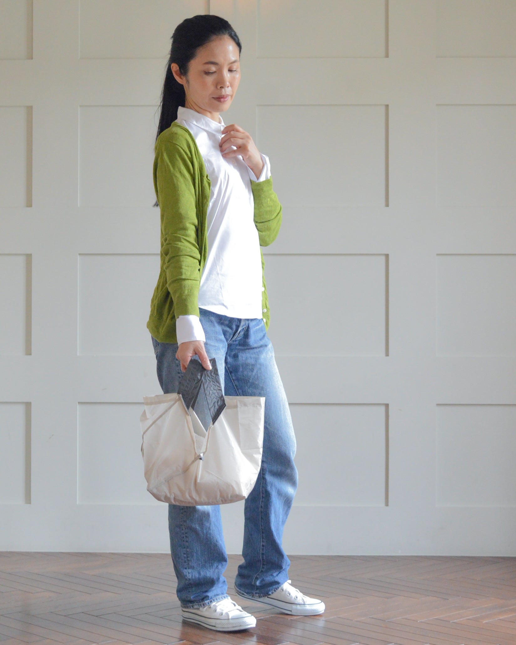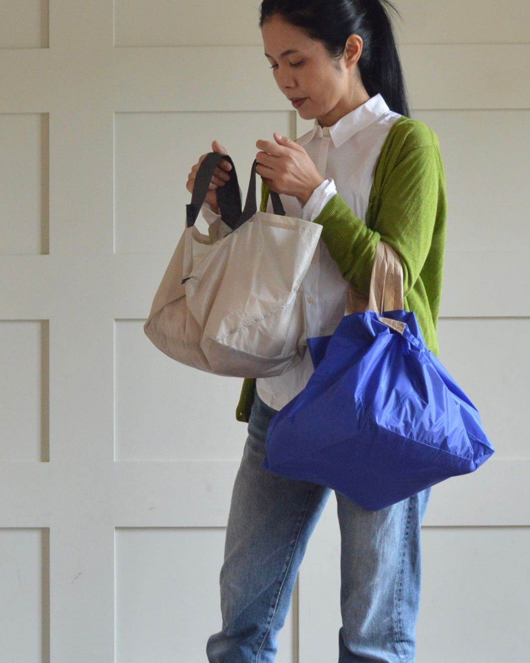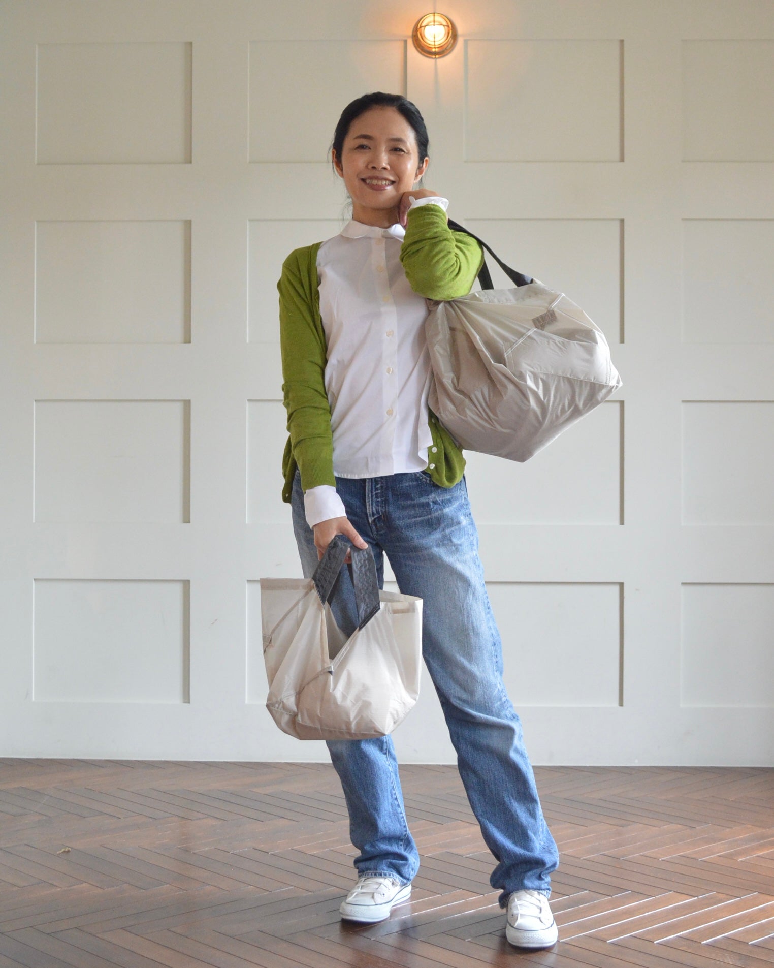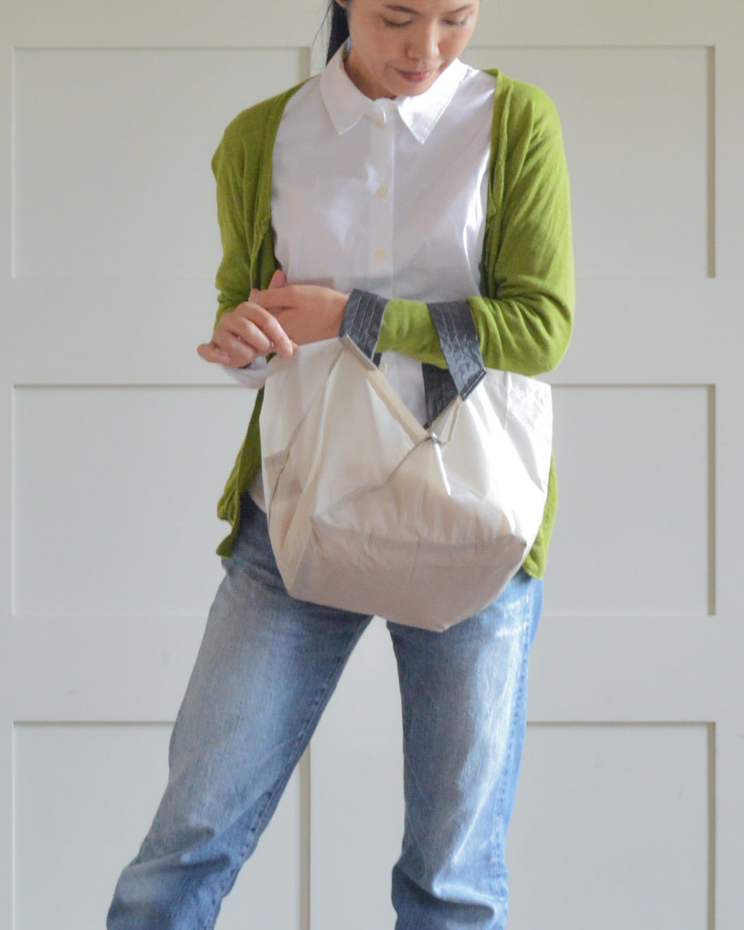 折りたたむと、わずか4.5cmのコンパクトサイズに!バッグにスッと入るから、持ち運びも超便利。スタイリッシュなデザインで、どんなシーンにもマッチします。いつでも手軽に使えるORIBAのエコバッグで、スマートな買い物体験を!