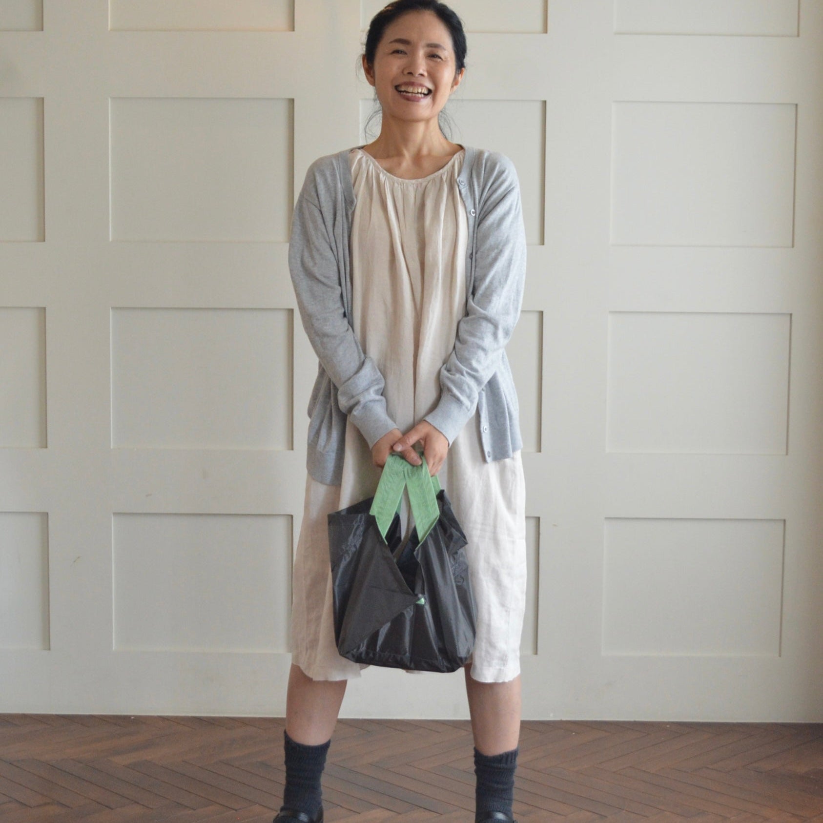 ・チャコール(本体)×ペールグリーン(持ち手) Mサイズ