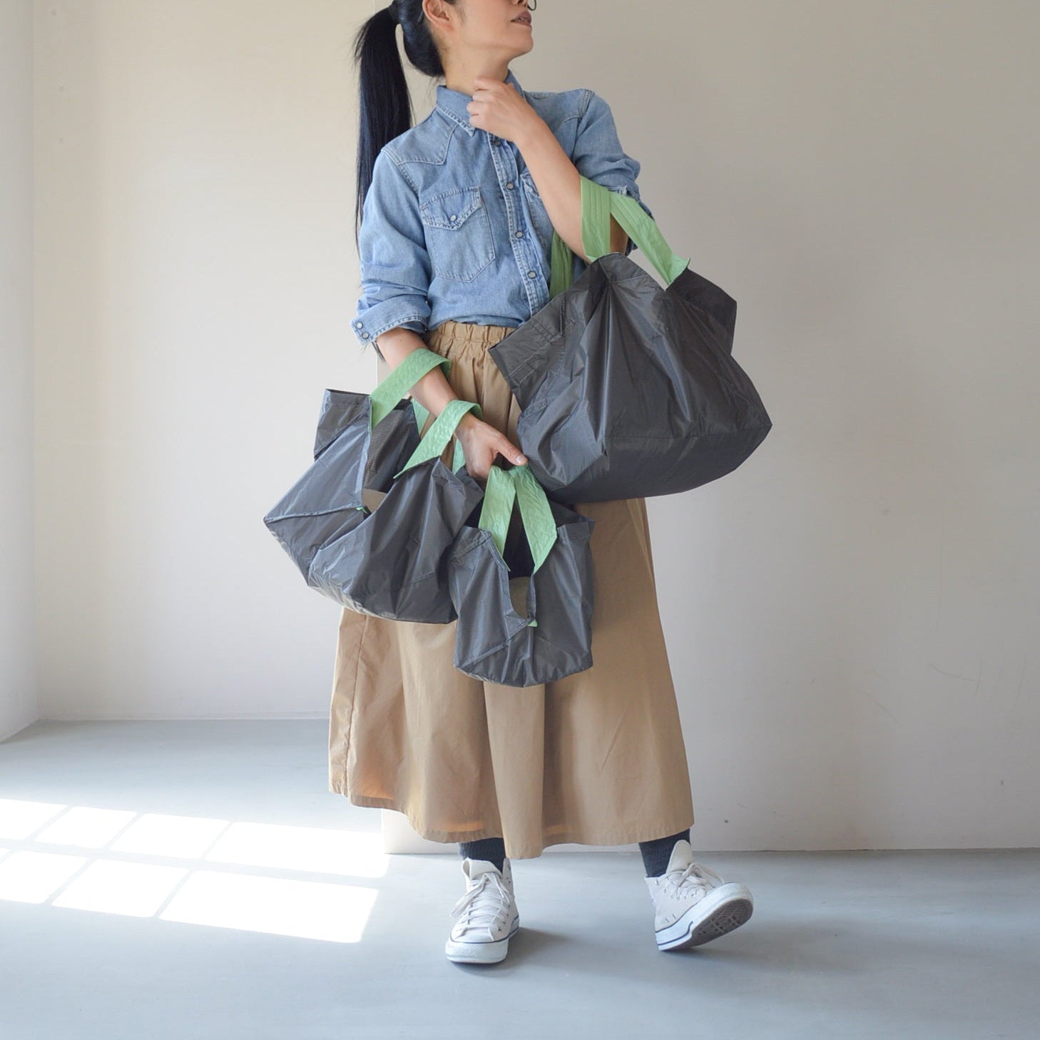 ORIBAのエコバッグは、1秒でパッと広がり、すぐに自立!袋詰めのストレスから解放され、コンビニやパン屋さんでの買い物が格段にスムーズになります。もう手間取る心配は無用!簡単に自立するので、袋詰めがとにかくラクになります。