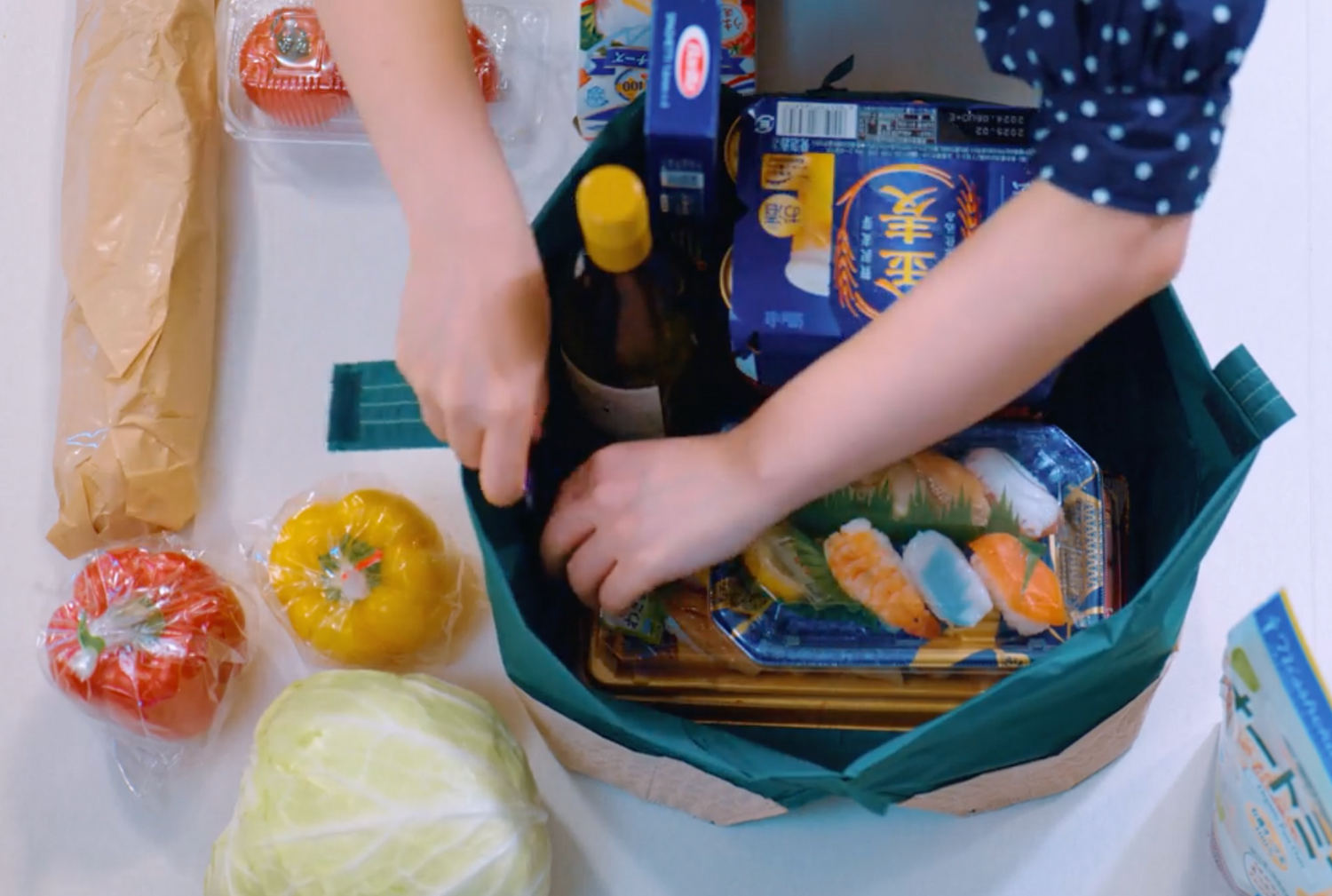 5人家族で3日分くらいためて買うので、オリバ2つと、普通のエコバッグも2つ使います。