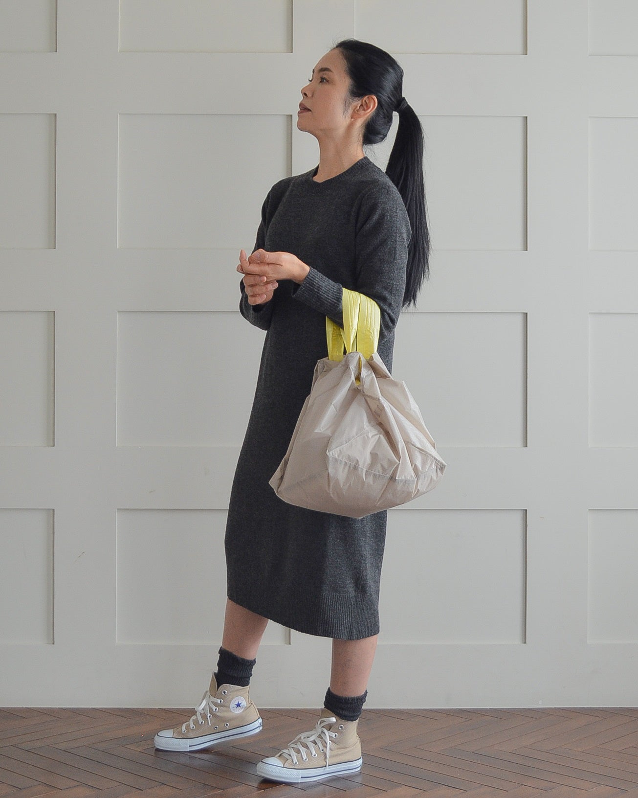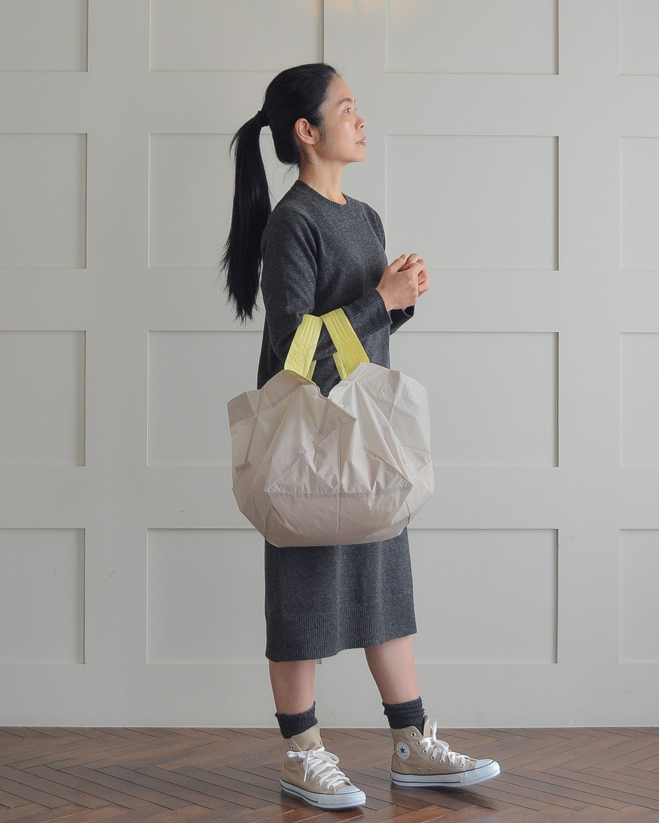 ・ミルクティーベージュ(本体)×れもんイエロー(持ち手) Lサイズ