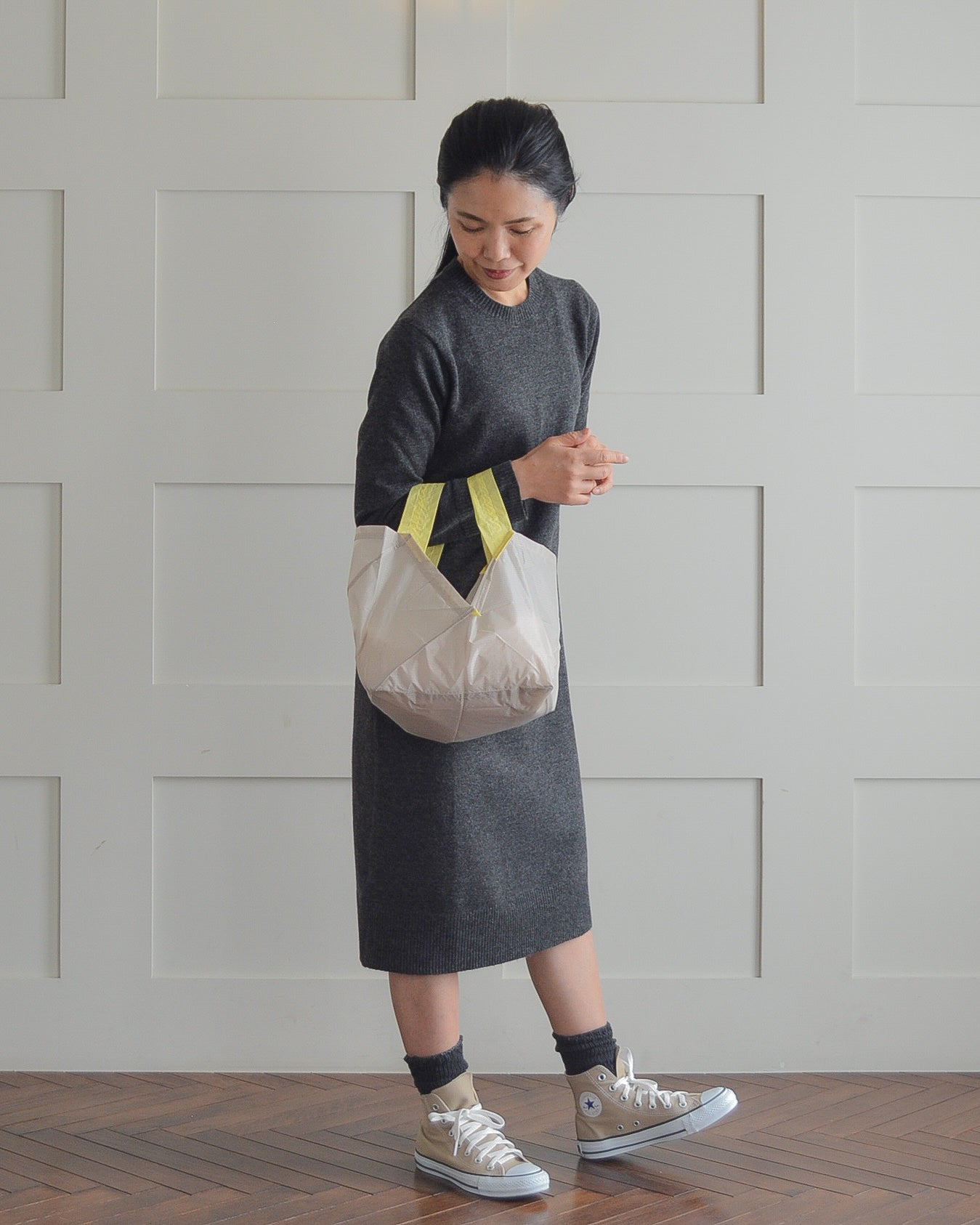 私のエコバッグはバッグの中でかさばらない小さな物で便利で大活躍してましたが、もう少しだけ入るエコバッグを探してました。