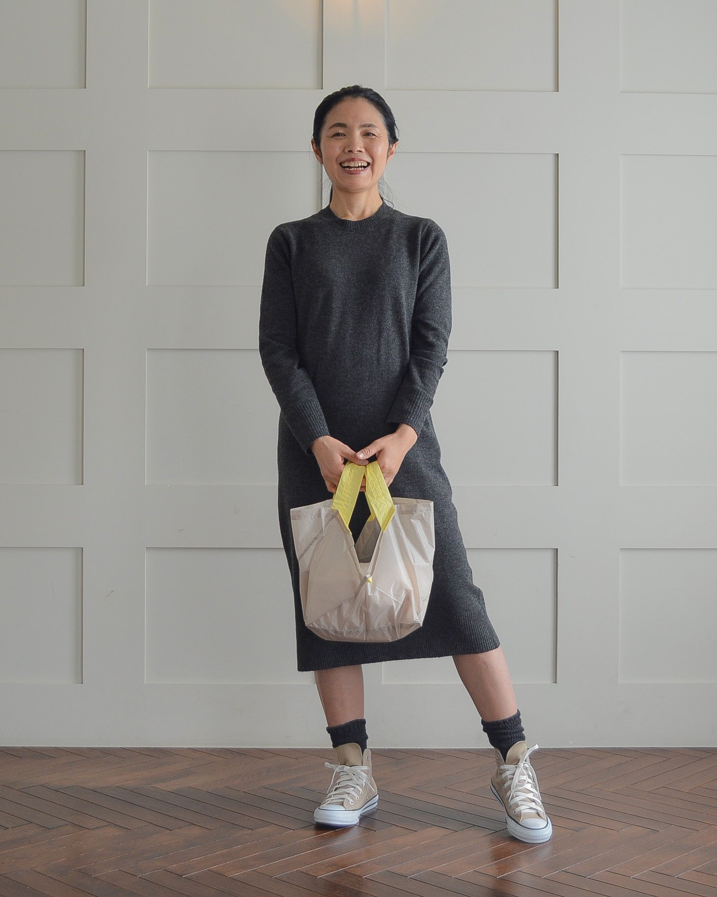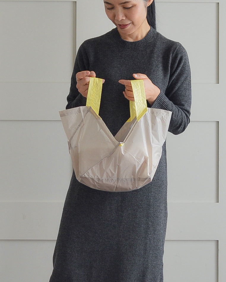 自立して・たためて・可愛い。文句のつけ所がないです。シャカシャカした生地感・色の組み合わせも素敵で、エコバッグにしておくのがもったいない!旅行用に更に大きいXLサイズも欲しいです。