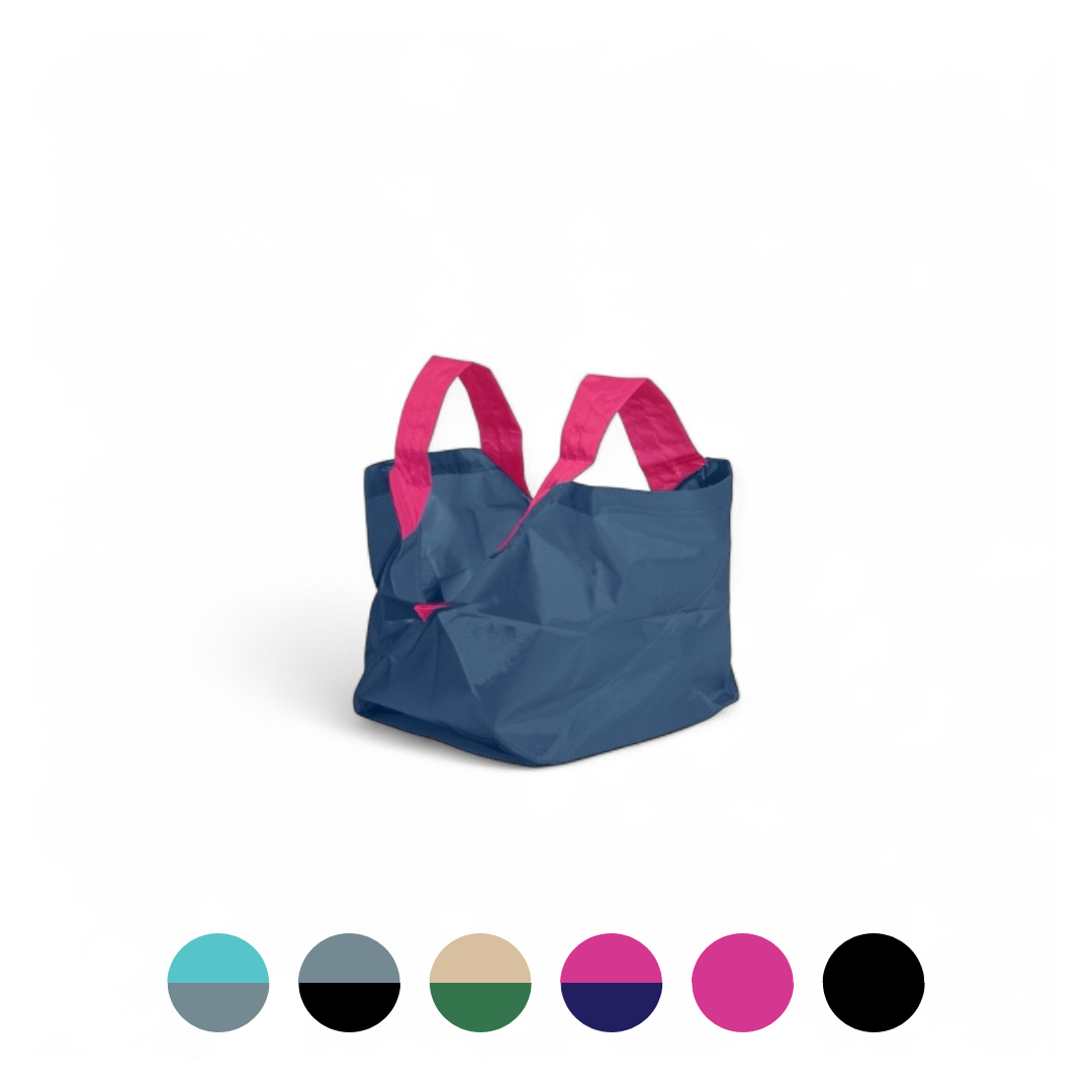 自立して・たためて・可愛い。文句のつけ所がないです。シャカシャカした生地感・色の組み合わせも素敵で、エコバッグにしておくのがもったいない!旅行用に更に大きいXLサイズも欲しいです。